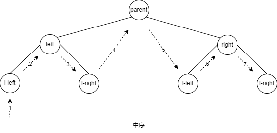 - 优先访问左子结点,然后访问父结点,最后访问右子结点