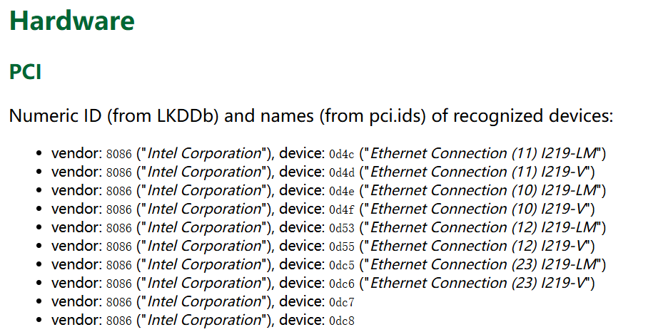 最新的 i219 网卡,需要非常新的内核才能够支持