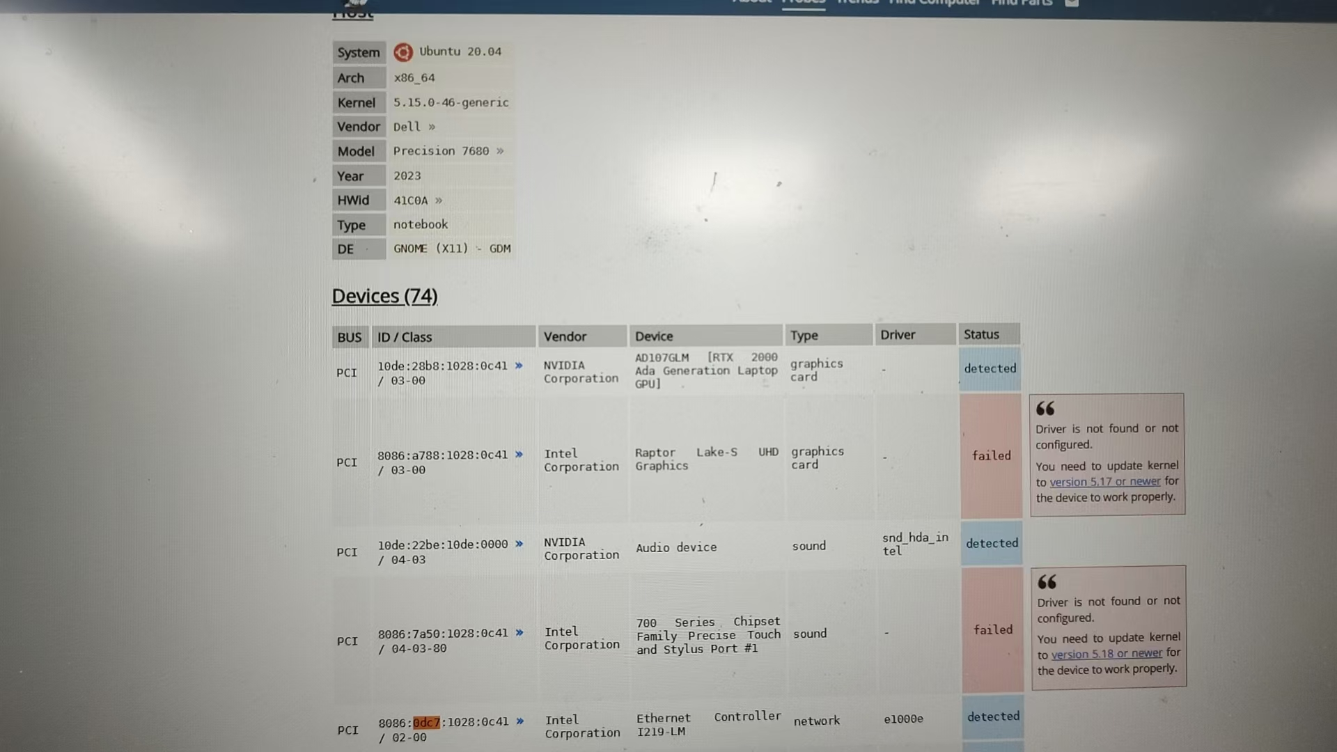 查看 网卡的 ven 和device id 根据这个id去找driver
