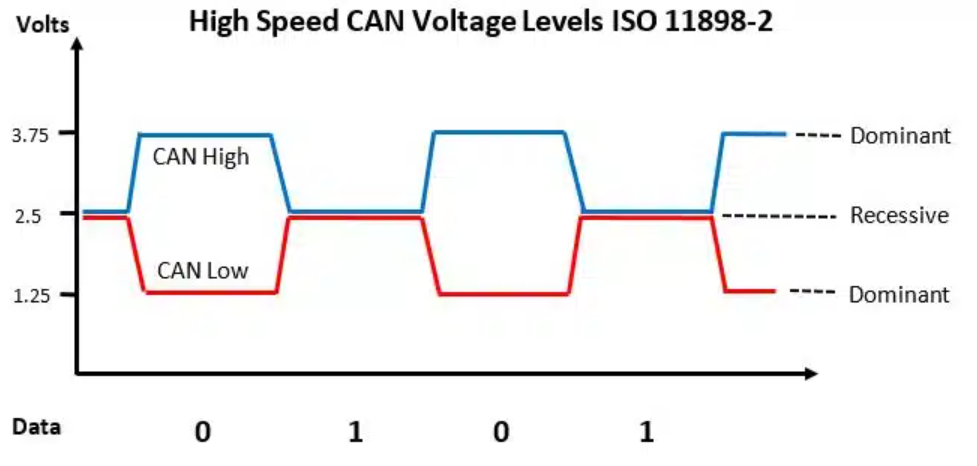 CAN 是差分信号,CAN Low 是 CAN High 的反信号。查看两者之间的差异可以消除信号在传输过程中遇到的任何共模干扰。