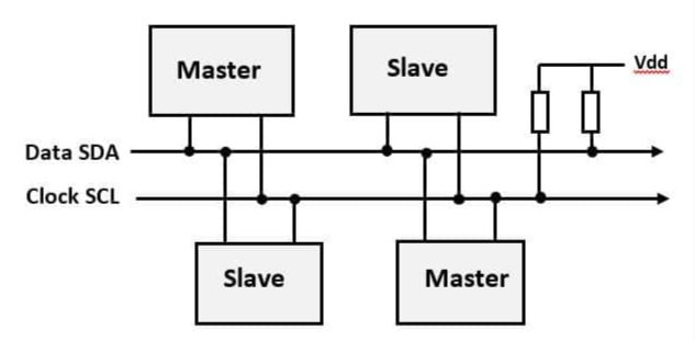 SCL – 这根线用来控制信息传递的节奏也就是时钟,就像说“现在轮到你说了”。